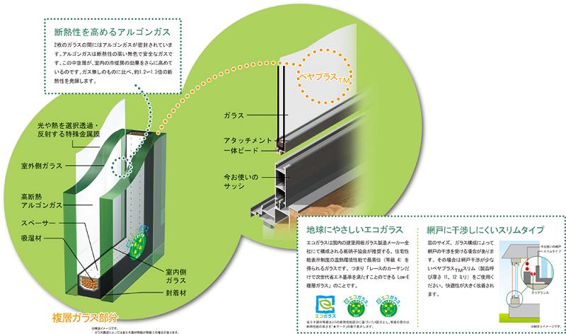 断熱性能で、断熱性を高めるアルゴンガスを2枚のガラスの間の空気層に封入。