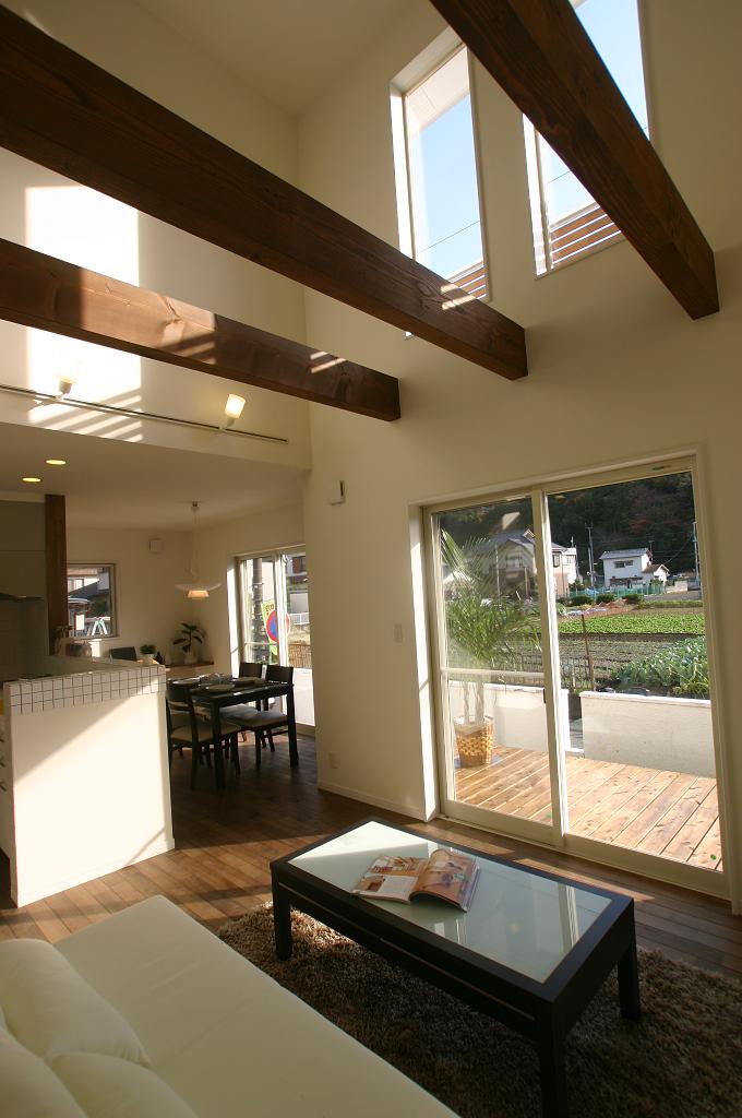 リビング上部に広がる吹き抜けの気持ちよさなど