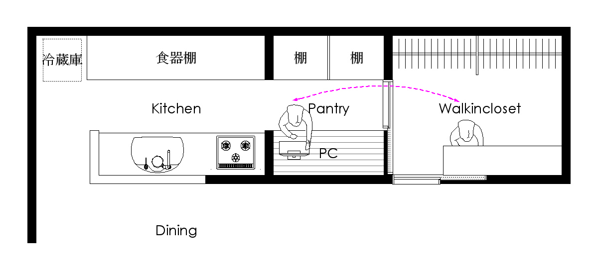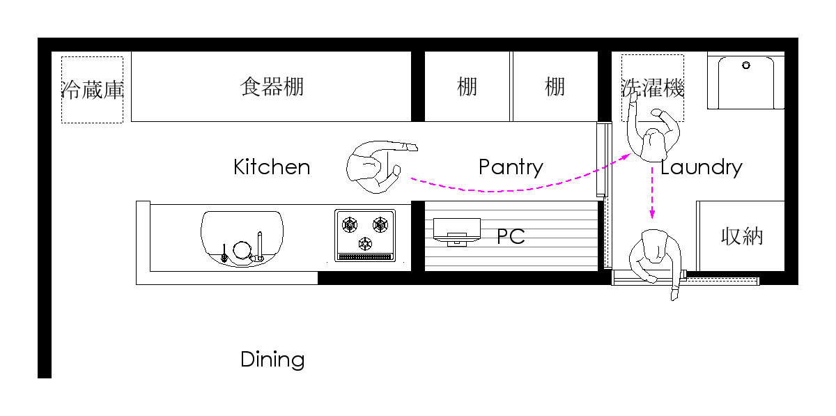 上図のようなレイアウトの場合は、洗濯前の衣類なんかが積んである脱衣所に