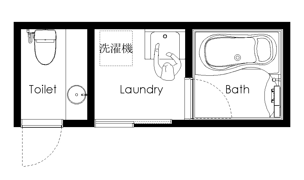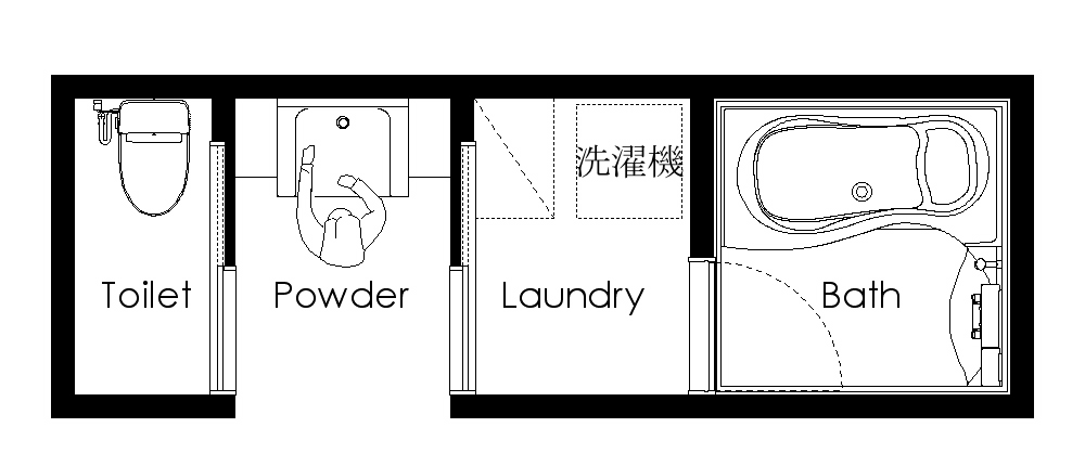そこで、下図のように脱衣所と洗面所をわけてみるといろいろメリットがあるんです。