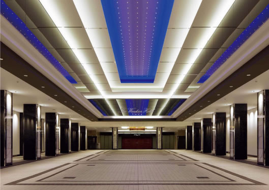 アプローチとエントランスの改修に併せて、1416台のLED照明器具を設置しました。